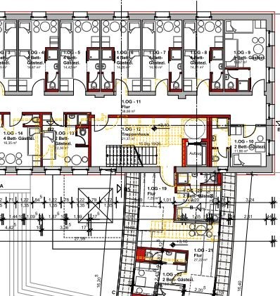 - der Ausrüstung der Gästezimmer mit jeweils eigenen Duschbädern