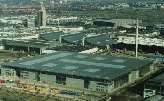 Haupttragwerk: Stahlfachwerkbinder, h = 4,50 m, e = 20,0 m, Stützweiten 2 x 80,0 m, Dachpfetten als unterspannte Träger, e = 5,0 m, Stützweite 20,0 m. Acht dreigeschossige Stb.-Kerne zur Aufnahme der Technik und Infrastruktur sowie zur horizontalen Stabilisierung der Konstruktion, vier Rettungstunnel unter der Hallensohle in Stb.-Bausweise, Hallenfassade großflächig verglast.
