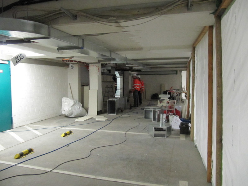- Einbau von Brandschutzdecken über Rettungswegen mit neuer Beleuchtung